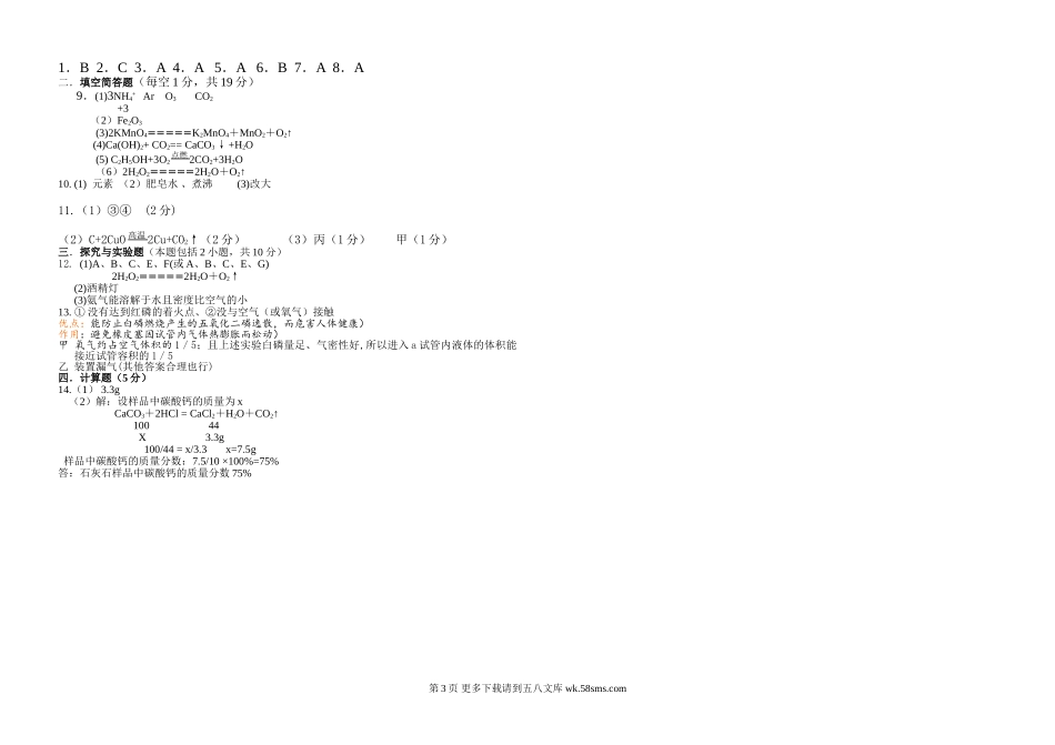 2014年秋九年级化学第三次月考试题及答案.doc_第3页