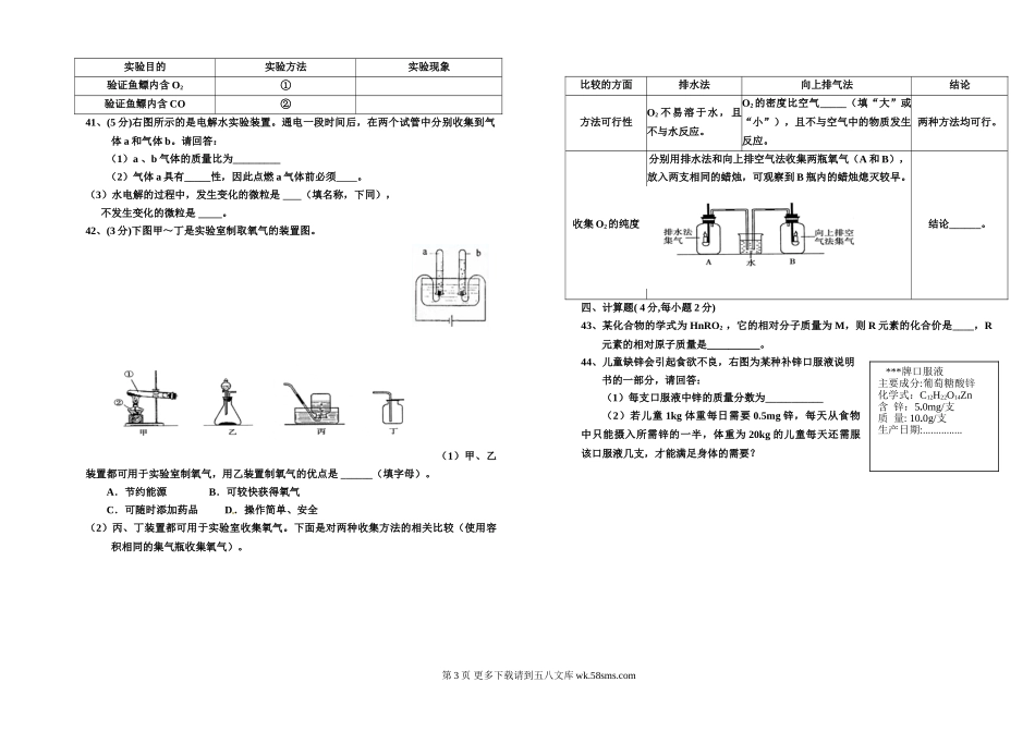 2014年秋初三化学期中考试试卷及答案.doc_第3页