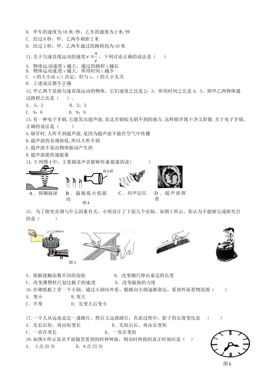 八年级物理初二物理钦州港开发区2015年秋季学期八年级物理期中调研试题及答案.doc_第2页