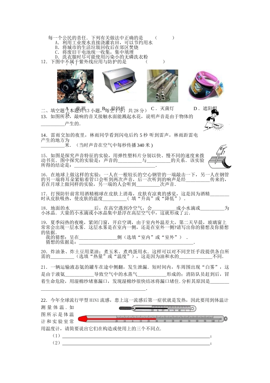 2009—2010学年第一学期八年级物理期中调研试题命题人:周小奋审题人:何毅注意:一至三项共计100分,第四项能力提升题20分,本卷总分120分一、选择题(每小题2分,共24分.每小题给出的四个选项中只有一个选项正...