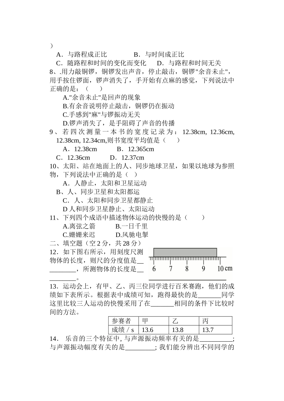 八年级物理初二物理望谟县2018-2019年八年级上册物理第一次月考试卷.doc_第2页