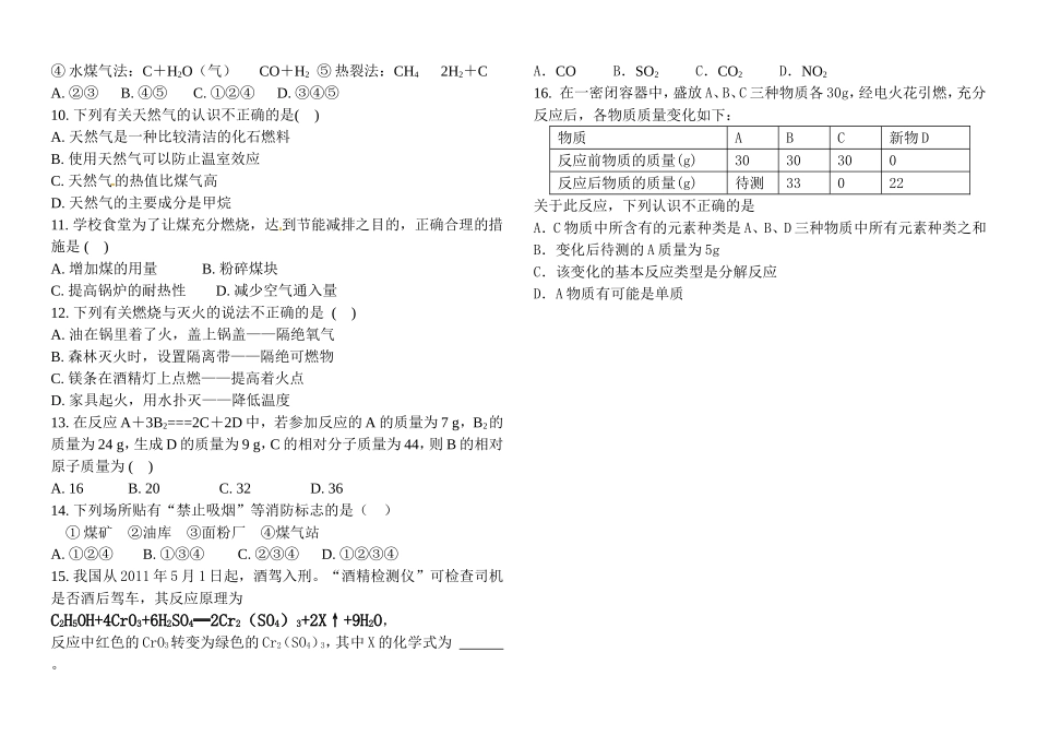 2018--2019学年第一学期九年级化学第三次月考试题.doc_第2页