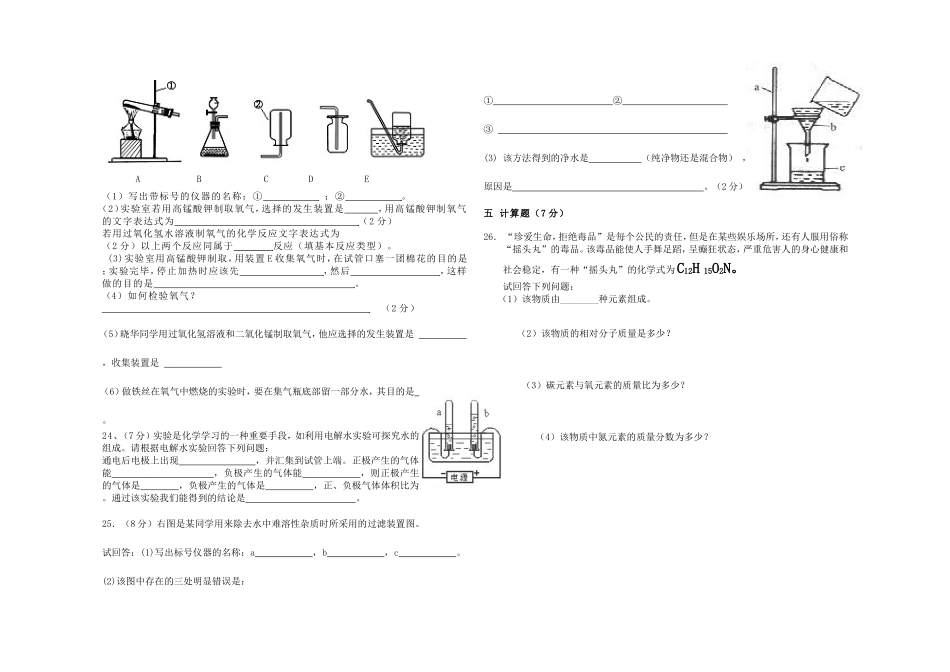 2017-2018木林中学九年级第一学期化学期中试卷.doc_第2页
