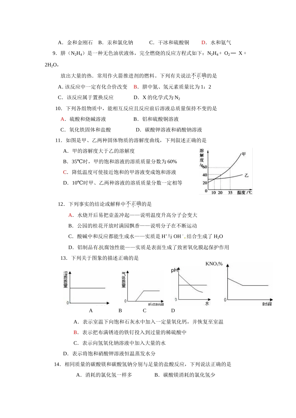 河南省西华县2017年中招一模化学试题及答案.doc_第2页
