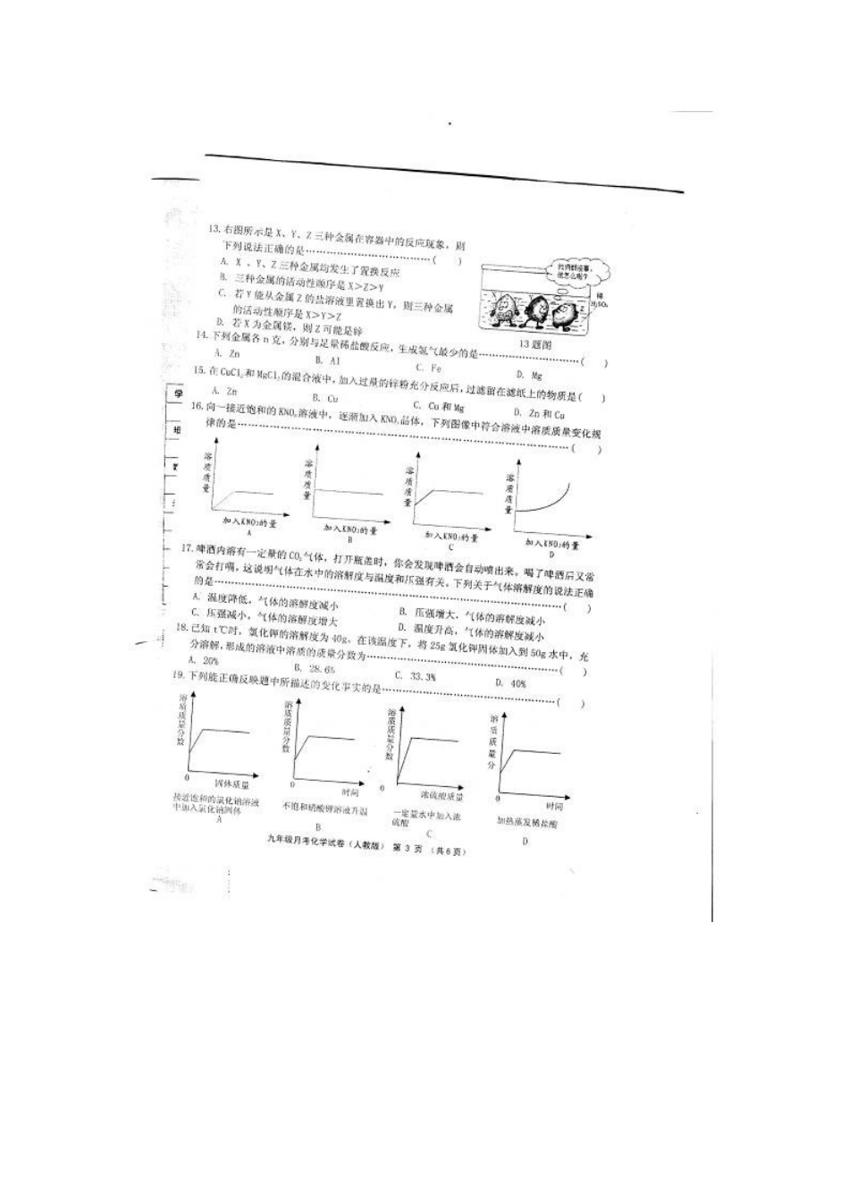 邯郸大名中学2016年九年级化学12月月考试卷及答案.doc_第3页