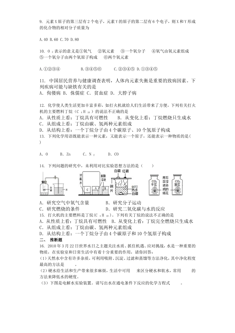 钦州高新区2016年九年级化学11月月考试题及答案.doc_第2页