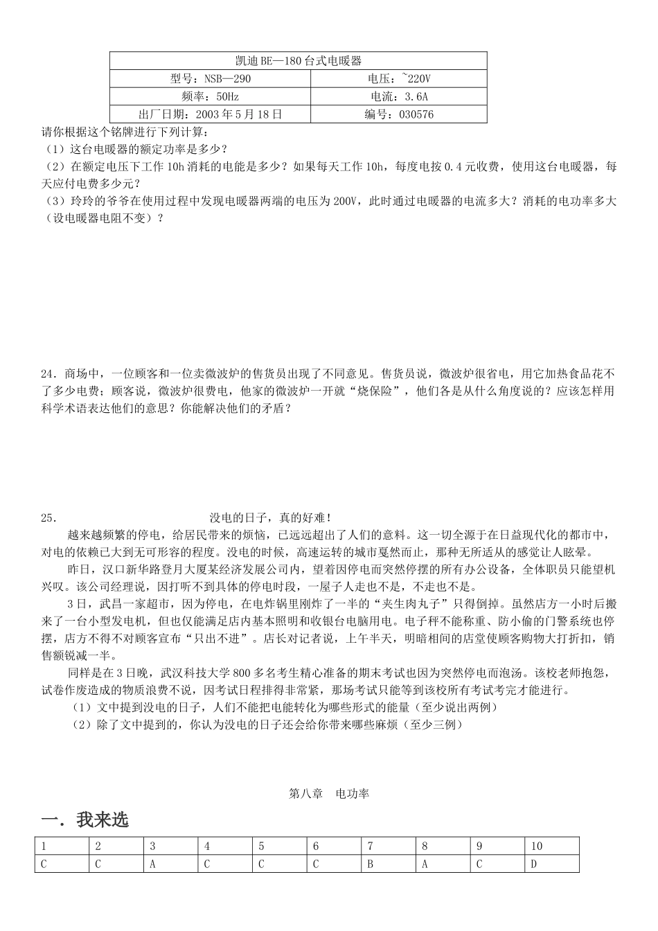 八年级物理初二物理物理八年级下人教新课标第八章 电功率 达标测试题.doc_第3页