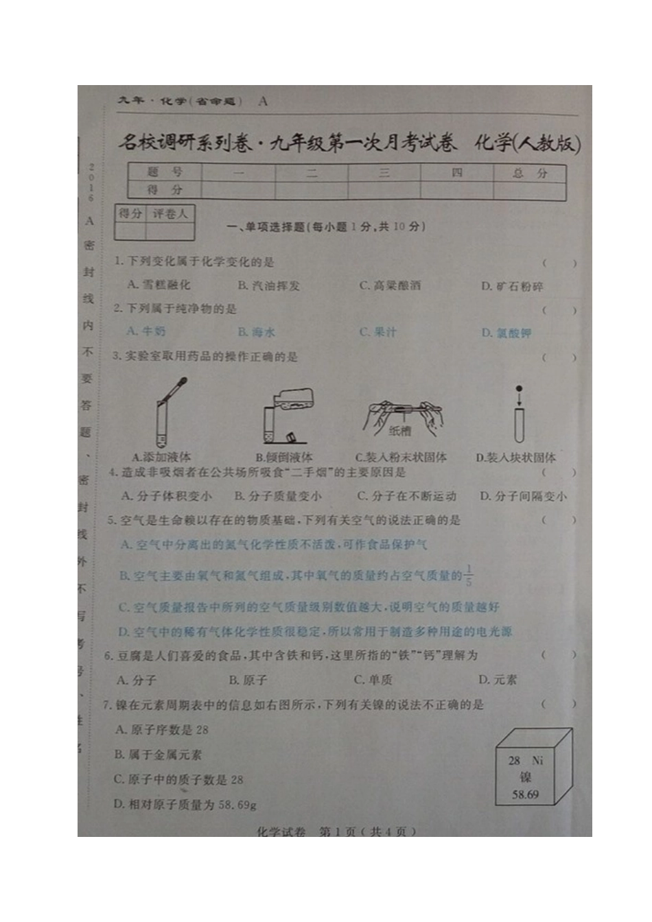 吉林名校调研(省命题)2017届九年级化学第一次月考试卷及答案.doc_第3页