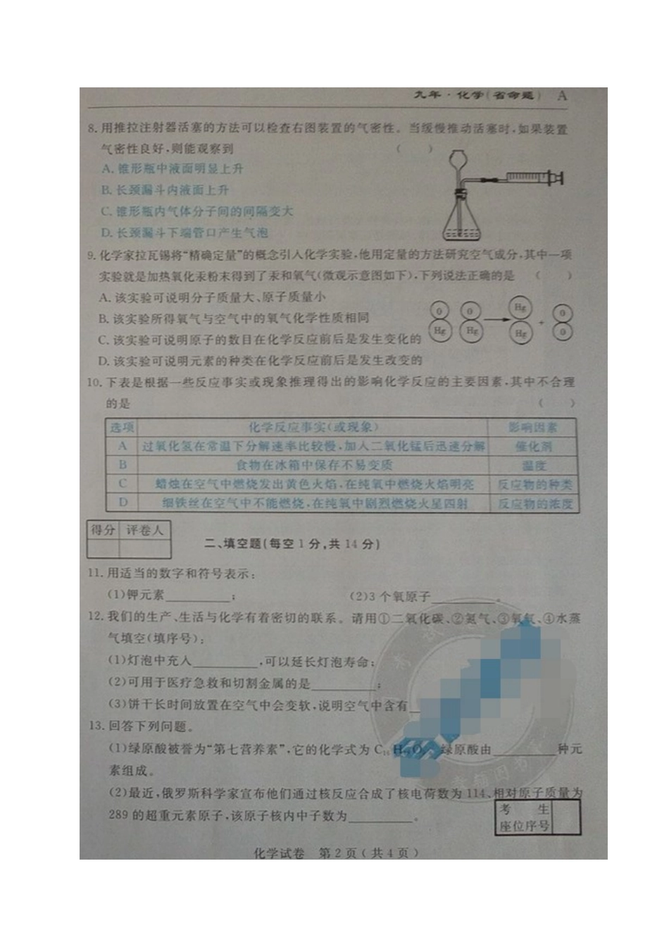 吉林名校调研(省命题)2017届九年级化学第一次月考试卷及答案.doc_第2页