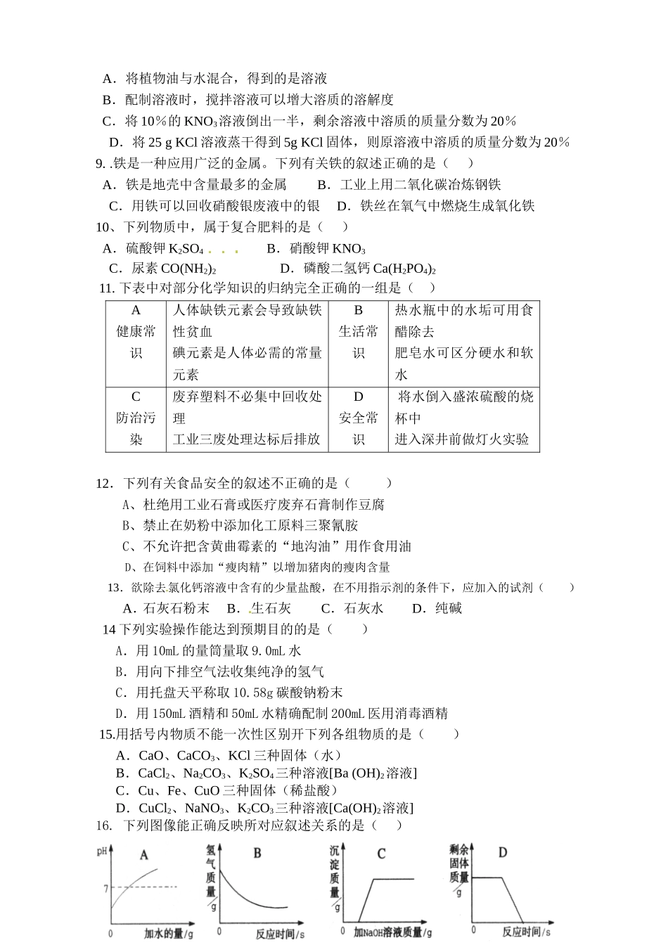 江津市2016九年级下学期化学期中试卷及答案.doc_第2页