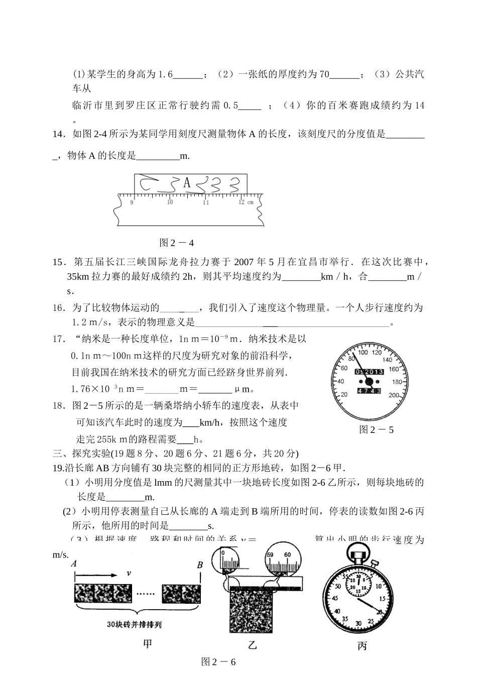 八年级物理初二物理运动的世界测试题及答案.doc_第2页