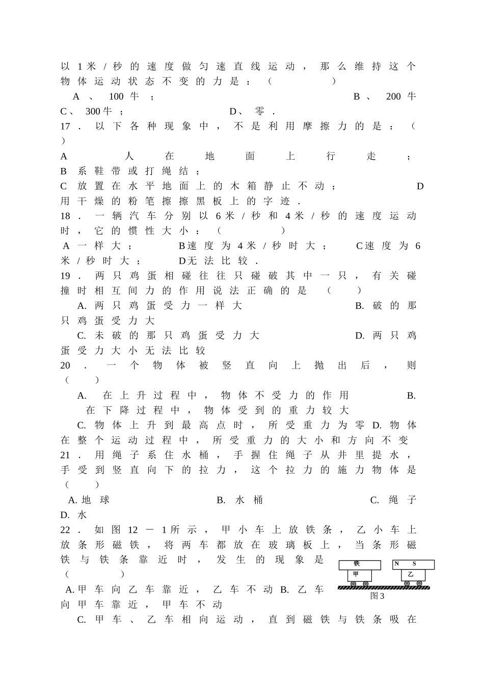 八年级物理初二物理运动和力测试题及答案.doc_第3页