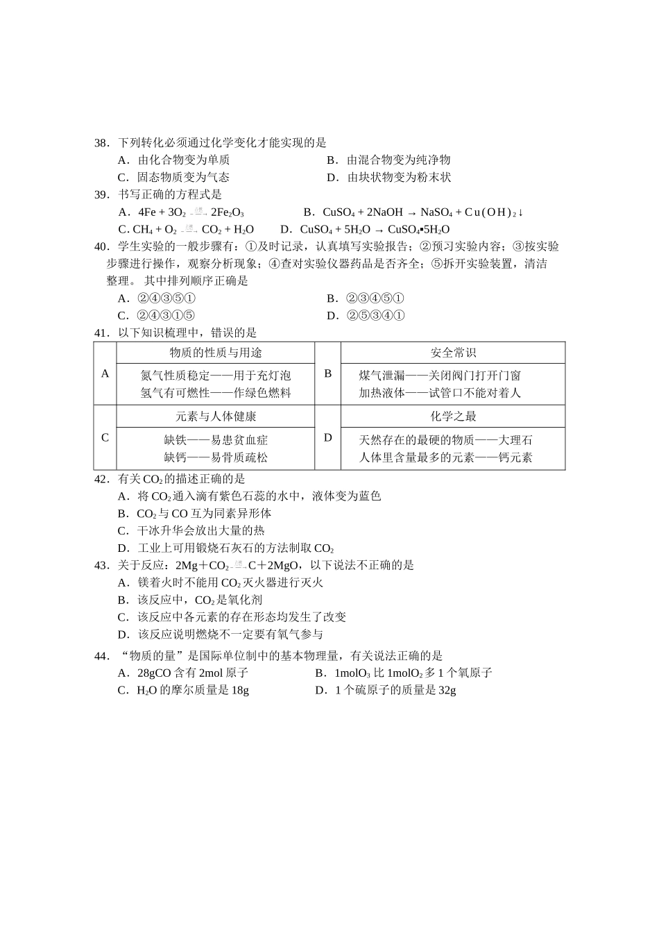 上海市浦东新区2015初三化学期末试卷及答案.doc_第2页