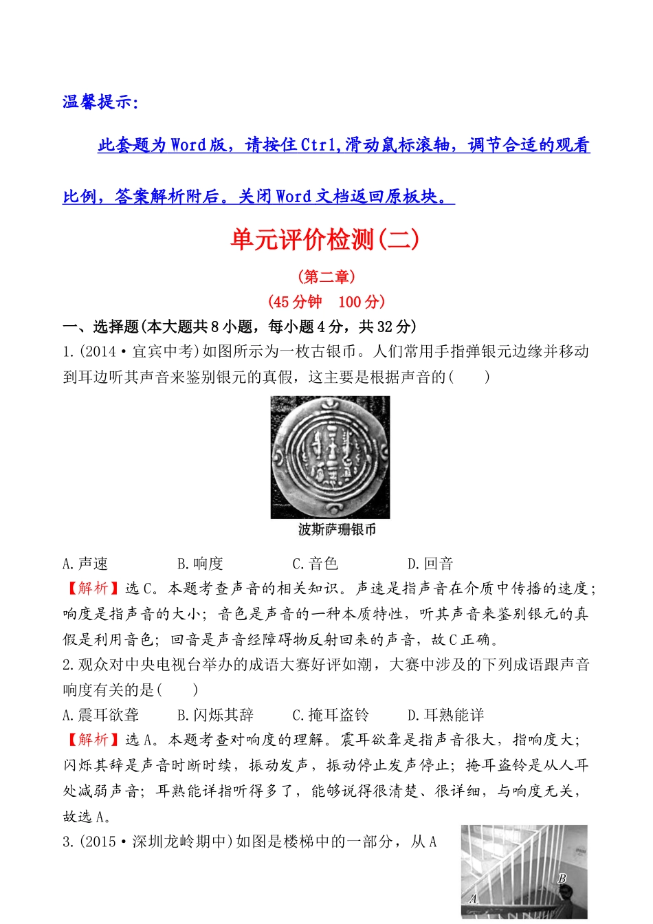 八年级物理初二物理百练百胜2016年人教版八年级物理上册单元测试题及答案(8份打包.doc_第2页