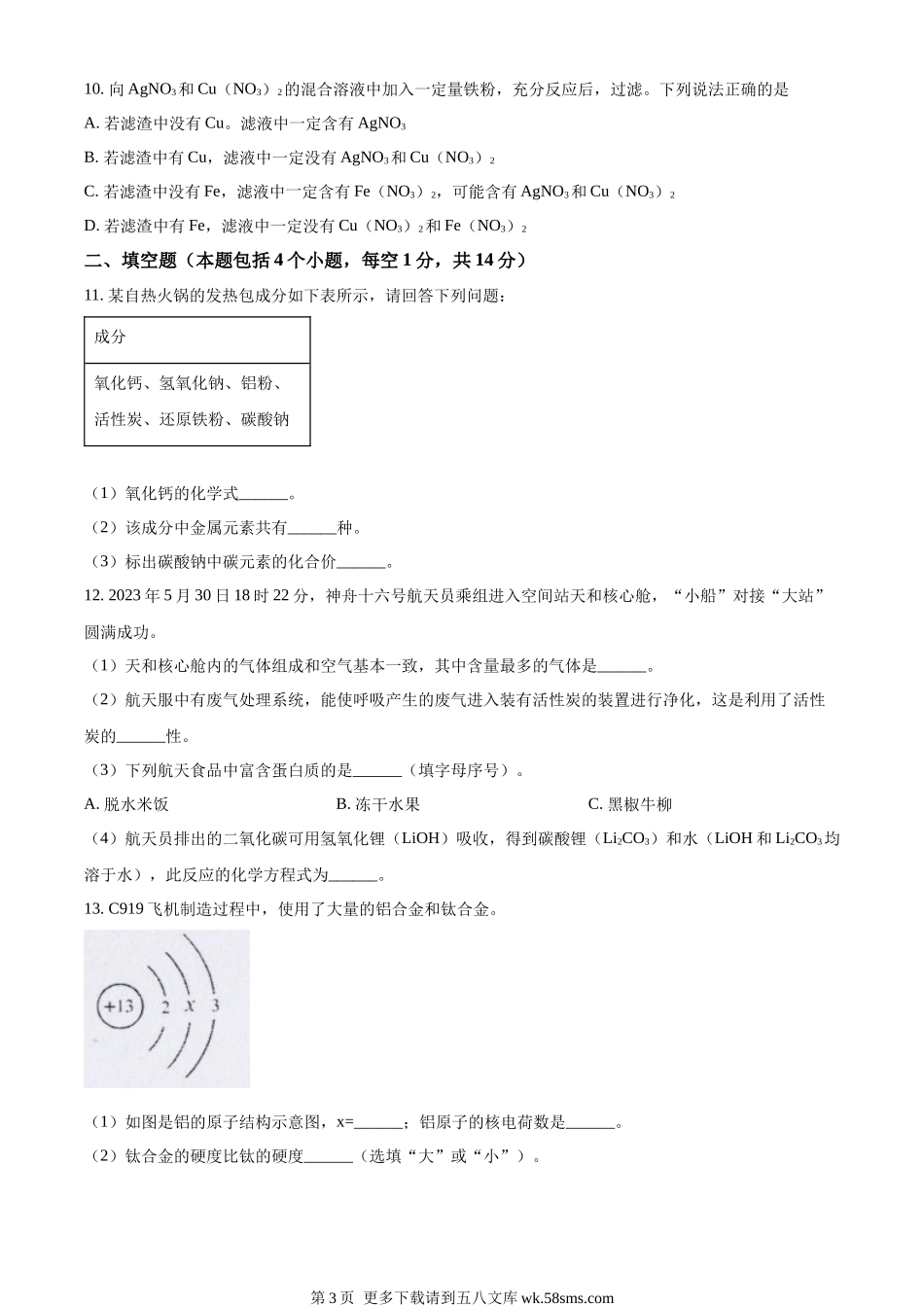 2023年辽宁省锦州市中考化学真题(原卷版).docx_第3页