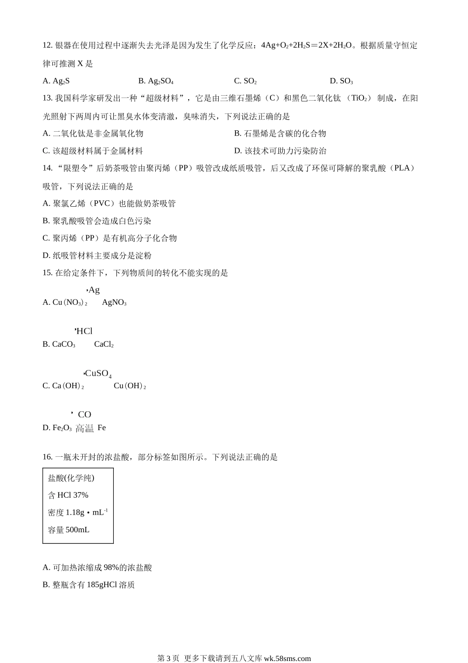 2023年江苏省常州市中考化学真题(原卷版).docx_第3页