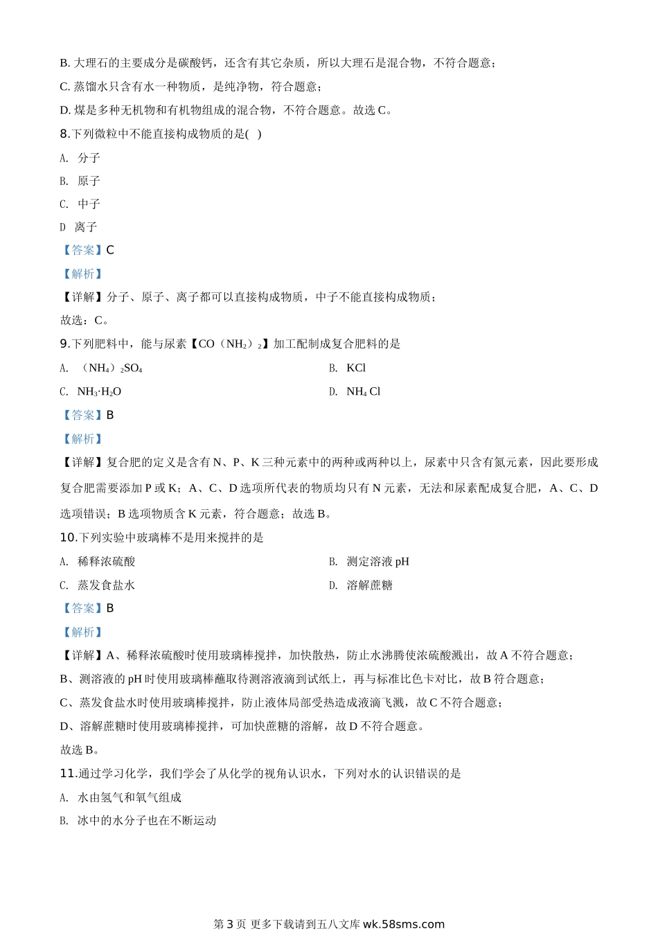 重庆市2020年中考(B卷)化学试题(解析版).doc_第3页