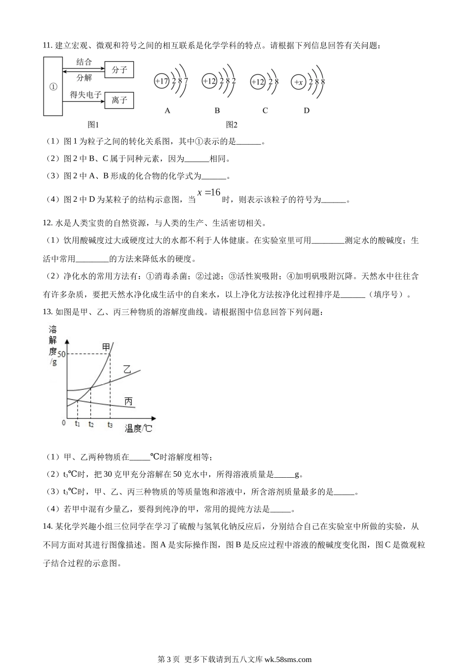 白银市2023年初中毕业升学暨高中阶段学校招生考试物理、化学综合试卷化学部分考生注意:本试卷满分为150分,考试时间为150分钟。所有试题均在答题卡上作答,否则无效。可能用到的相对原子质量:H-1C-12N-14O-16Cl...