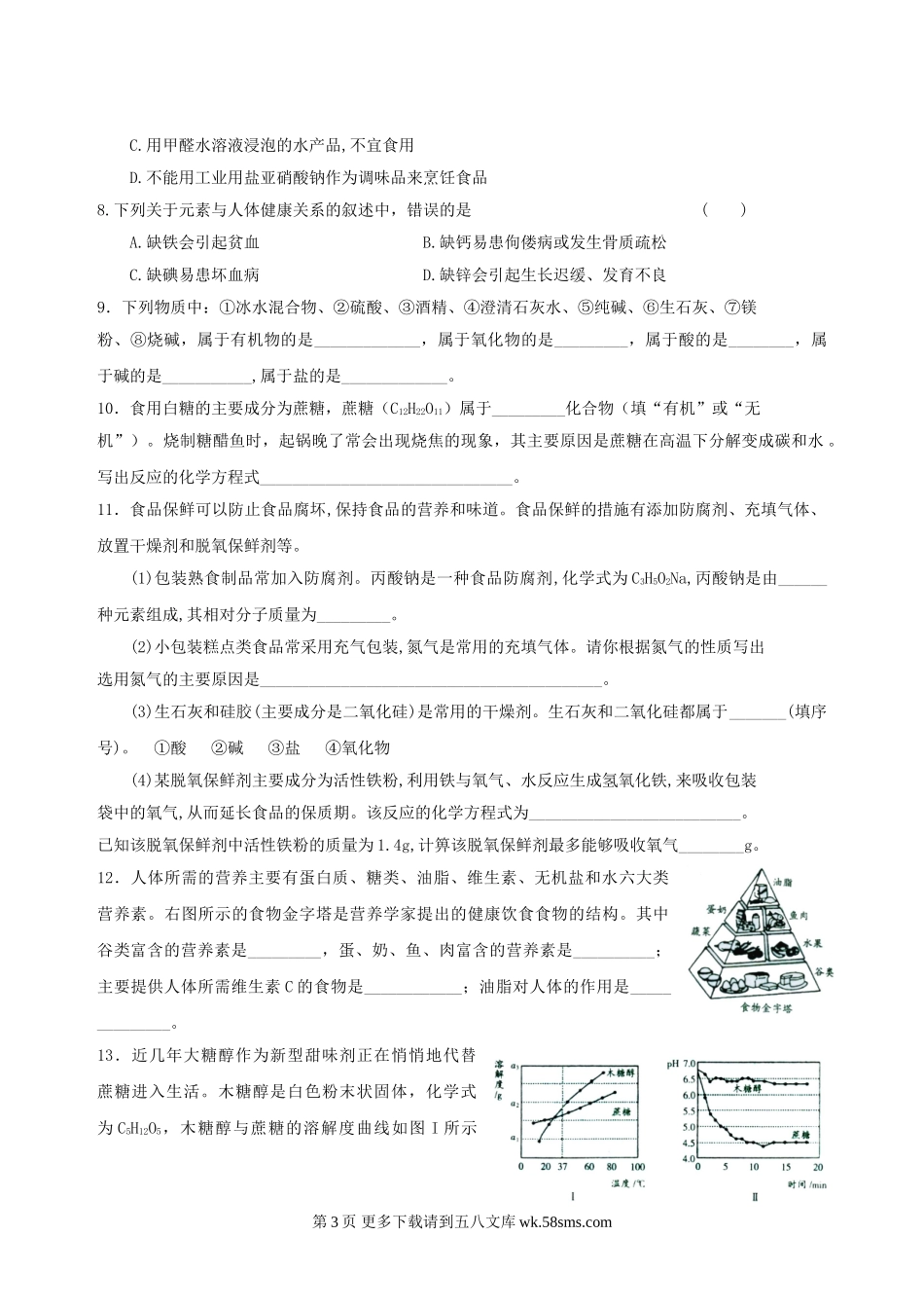 沪科版化学一轮复习训练--食品中的有机化合物(无答案).doc_第3页