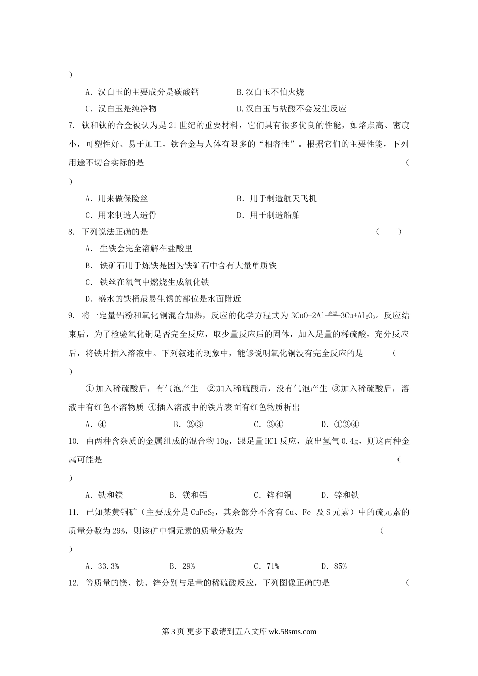 沪科版化学一轮复习训练-- 金属与矿物(无答案).doc_第3页