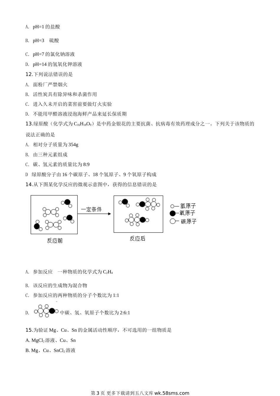 云南省昆明市2020年中考化学试题(原卷版).doc_第3页