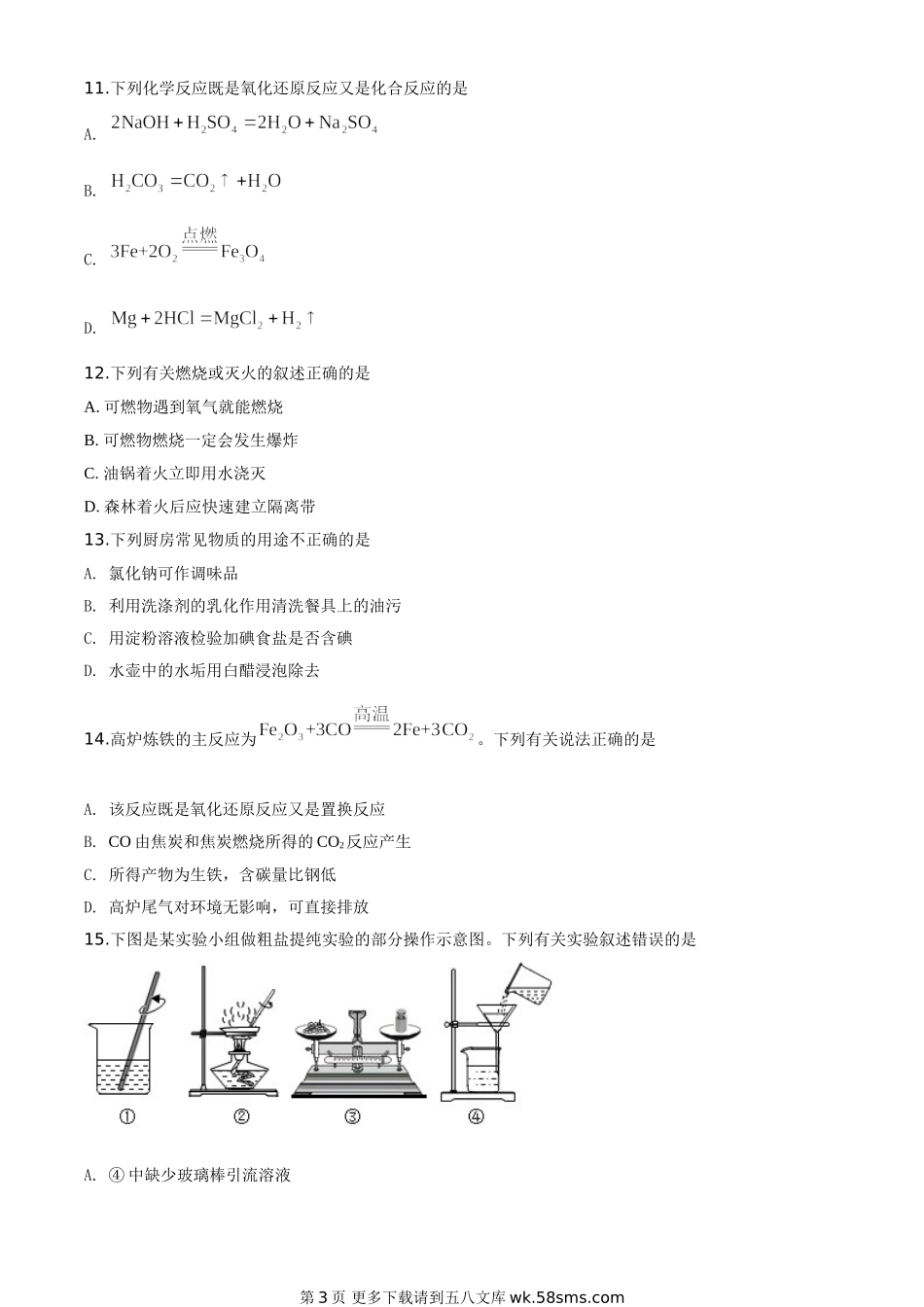 湖南省怀化市2020年中考化学试题(原卷版).doc_第3页