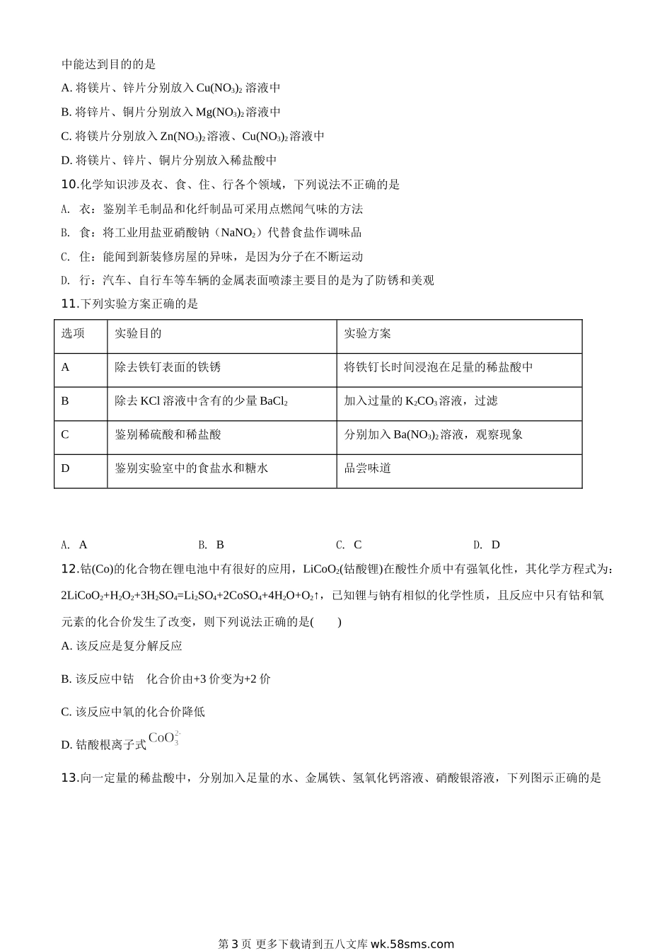 四川省乐山市2020年中考化学试题(原卷版).doc_第3页
