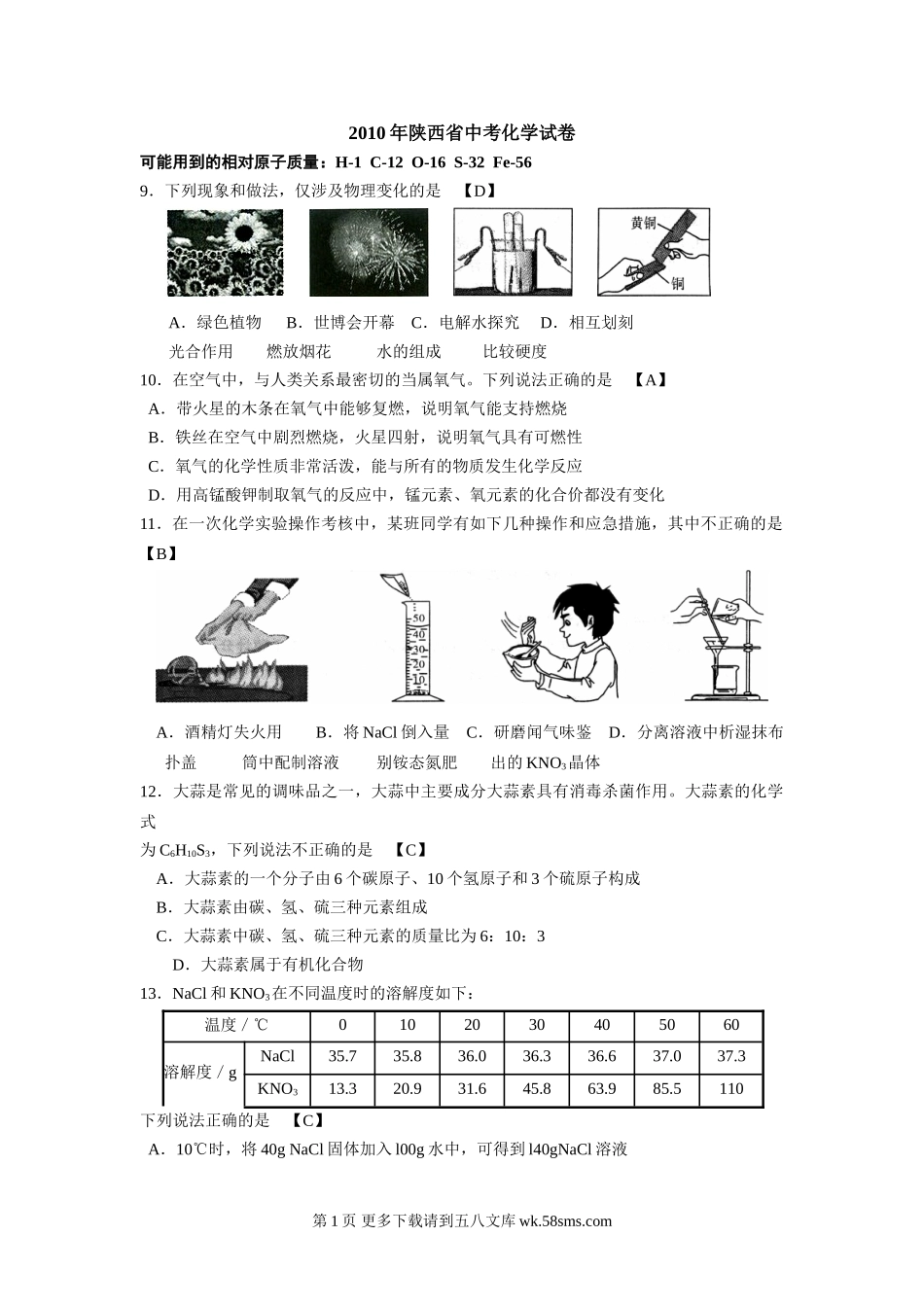 2010陕西省中考化学试卷及答案.doc_第1页