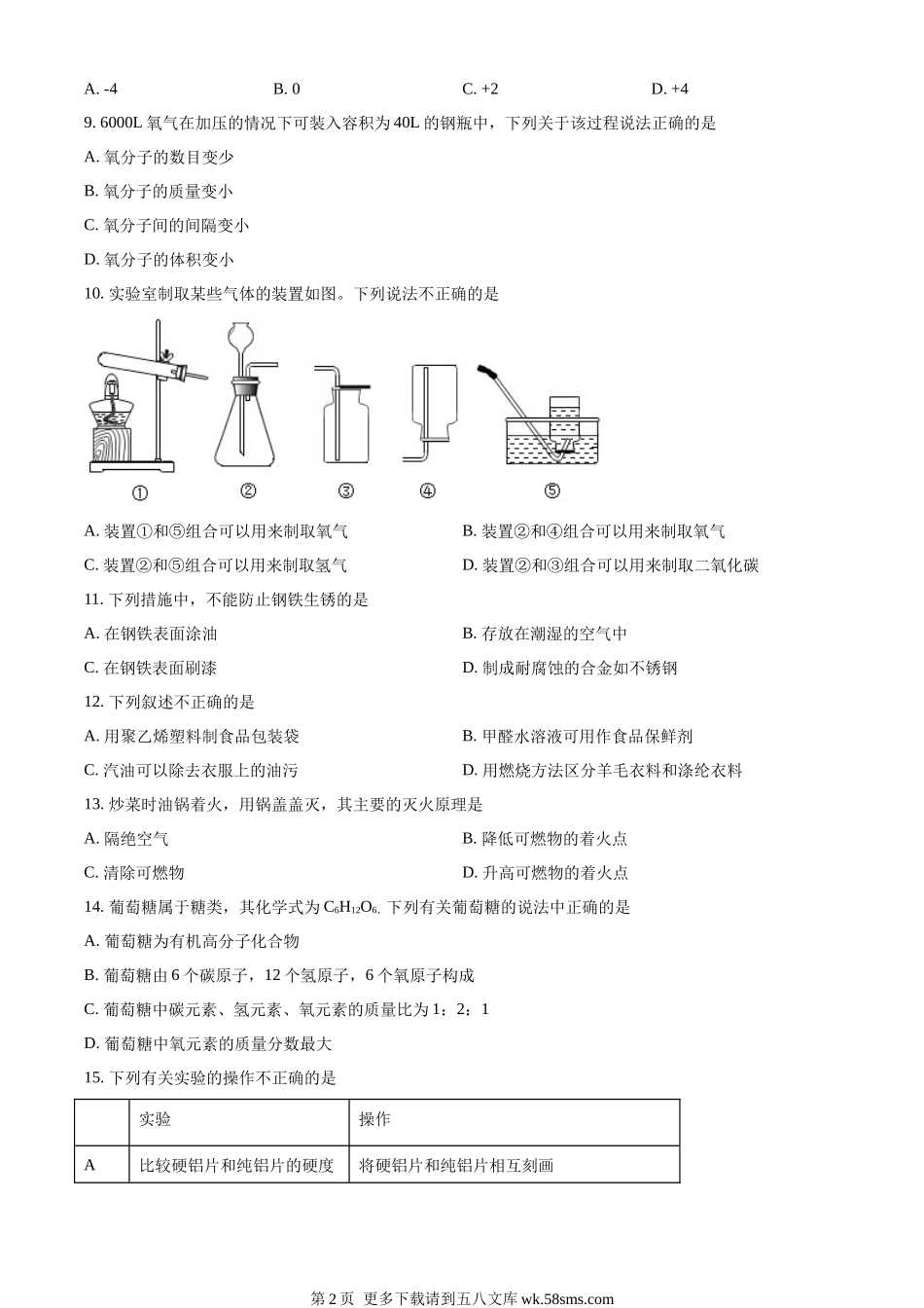 2022年江苏省南京市中考化学真题(原卷版).docx_第2页