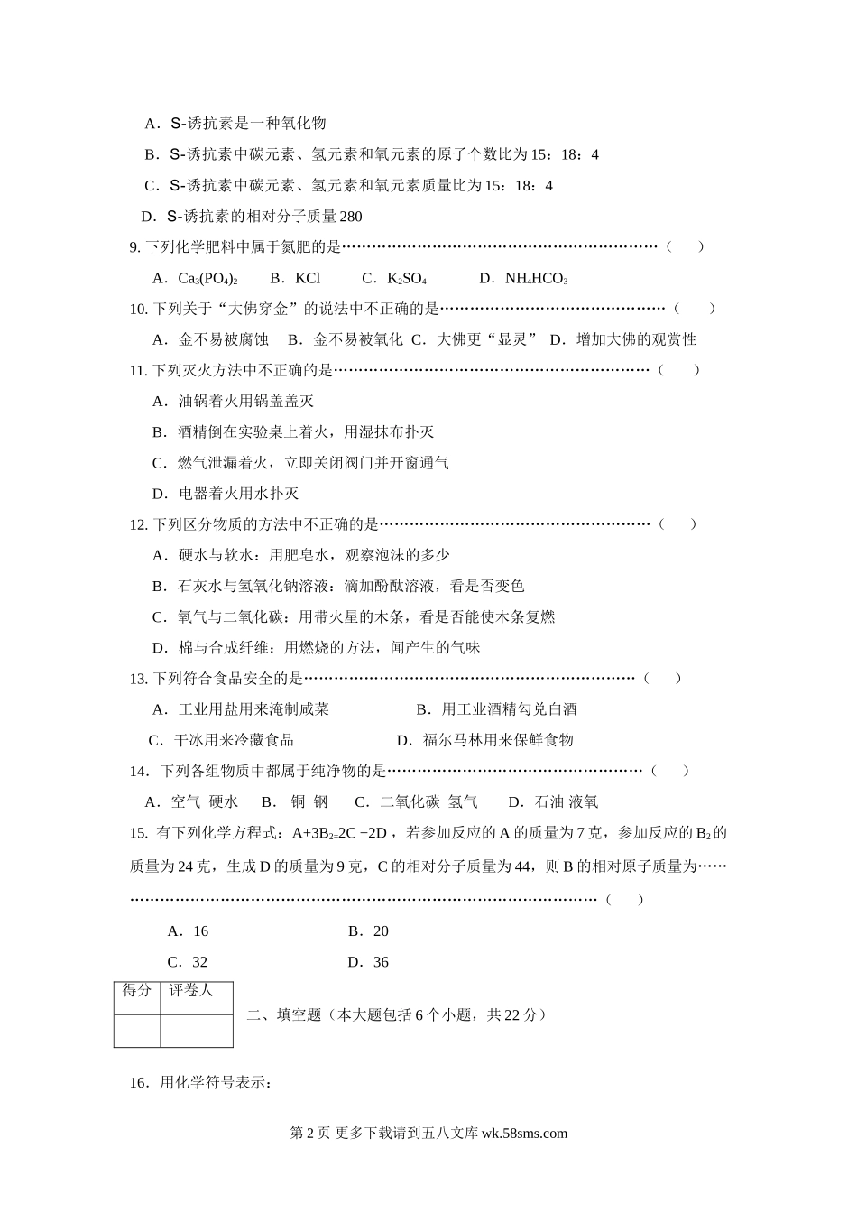 潼南县2010年初中毕业暨高中招生考试化学试题(全卷共四大题,满分70分,与物理共用120分钟)题号一二三四总分总分人得分可能用到的相对原子质量:Ca40C12O16H1Cl35.5一、选择题(本大题包括15小题,每小题2分,...