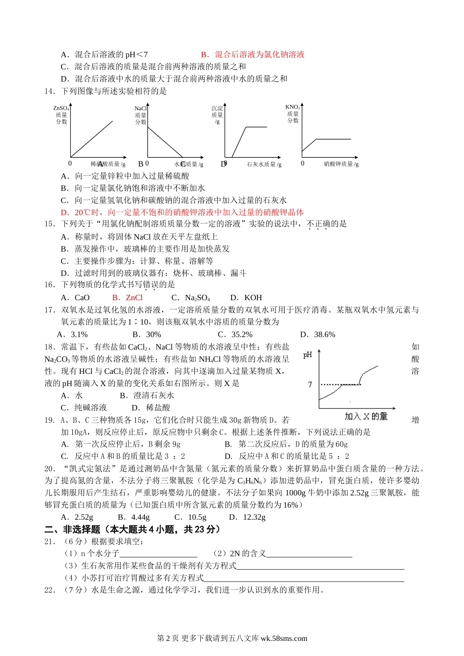 2010中考化学模拟试题三可能用到的相对原子质量:H-1C-12O-16Fe-56S-32Zn-65Mg-24N-14Ca-40Cl-35.5一、选择题(本题共20小题,每小题只有1个选项符合题意。每小题2分,共40分)1.人类每时每刻都离不开空气,在空气...