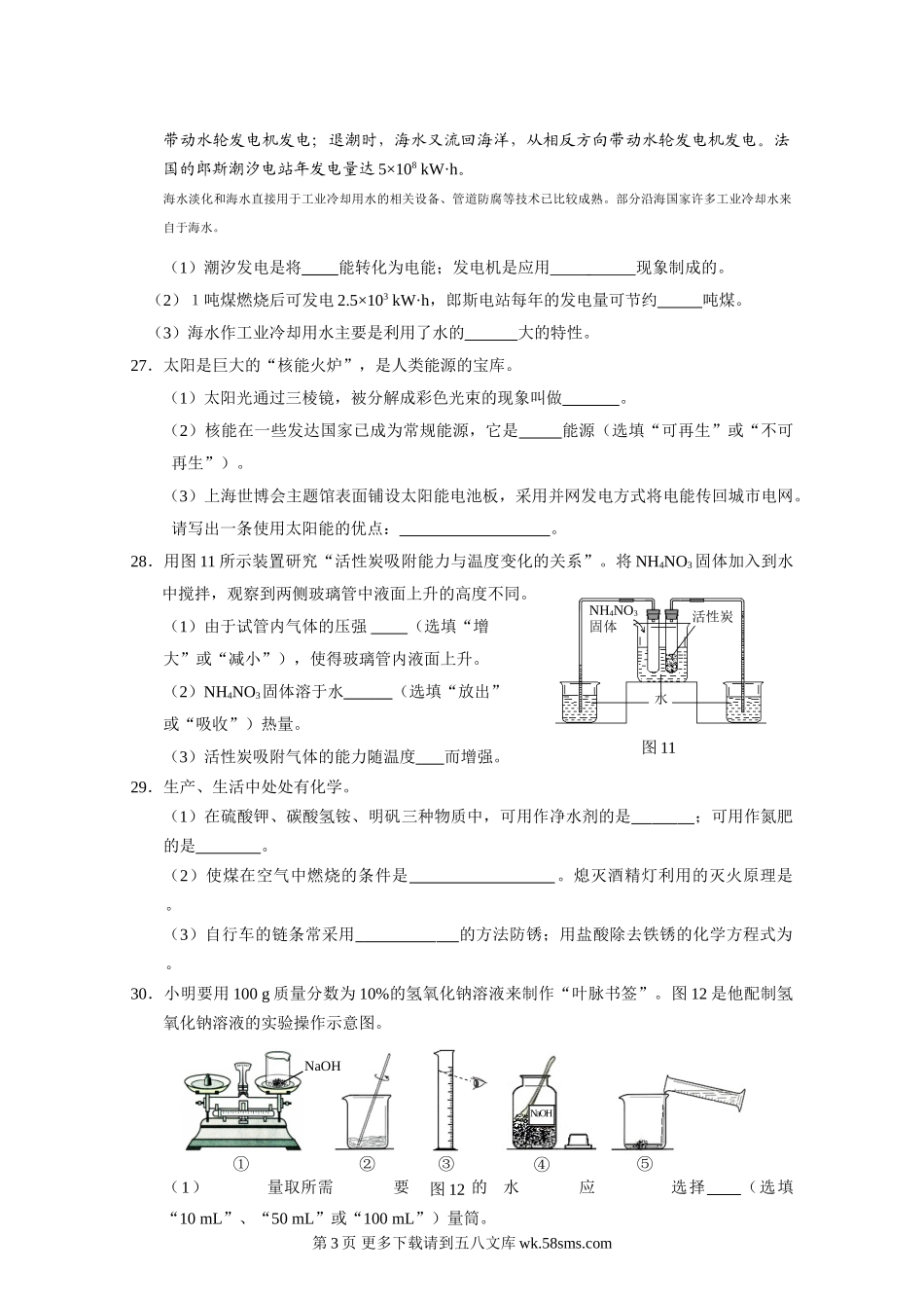281+11图12010年河北省初中毕业生升学文化课考试化学试卷一、选择题1.下列物质不能为人类生命活动提供能量的是A.米饭B.水C.鸡蛋D.花生油2.下列有关氧气的说法正确的是A.能供给呼吸B.化学性质比较稳定C....