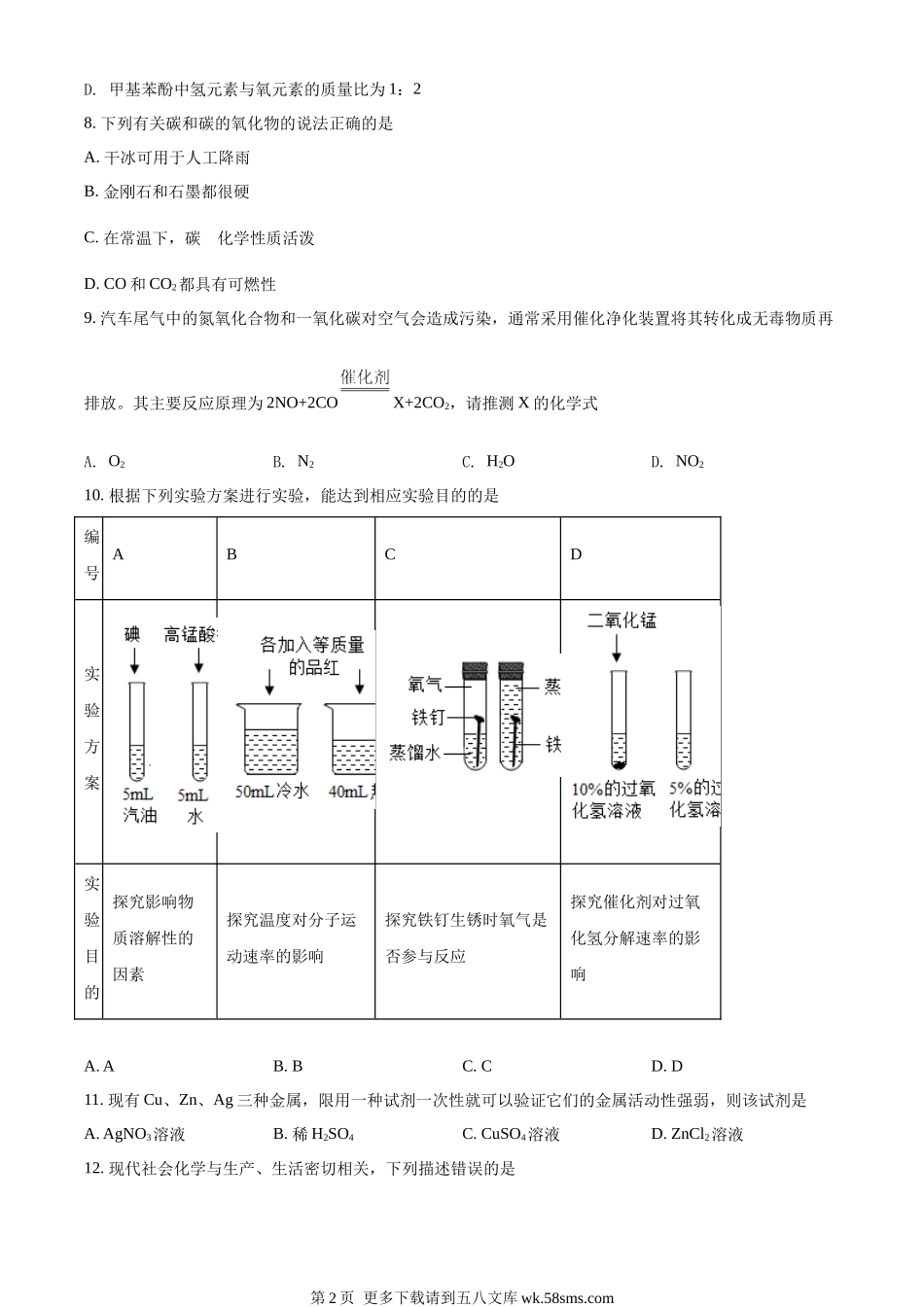 2022年湖南省娄底市中考化学真题(原卷版).docx_第2页