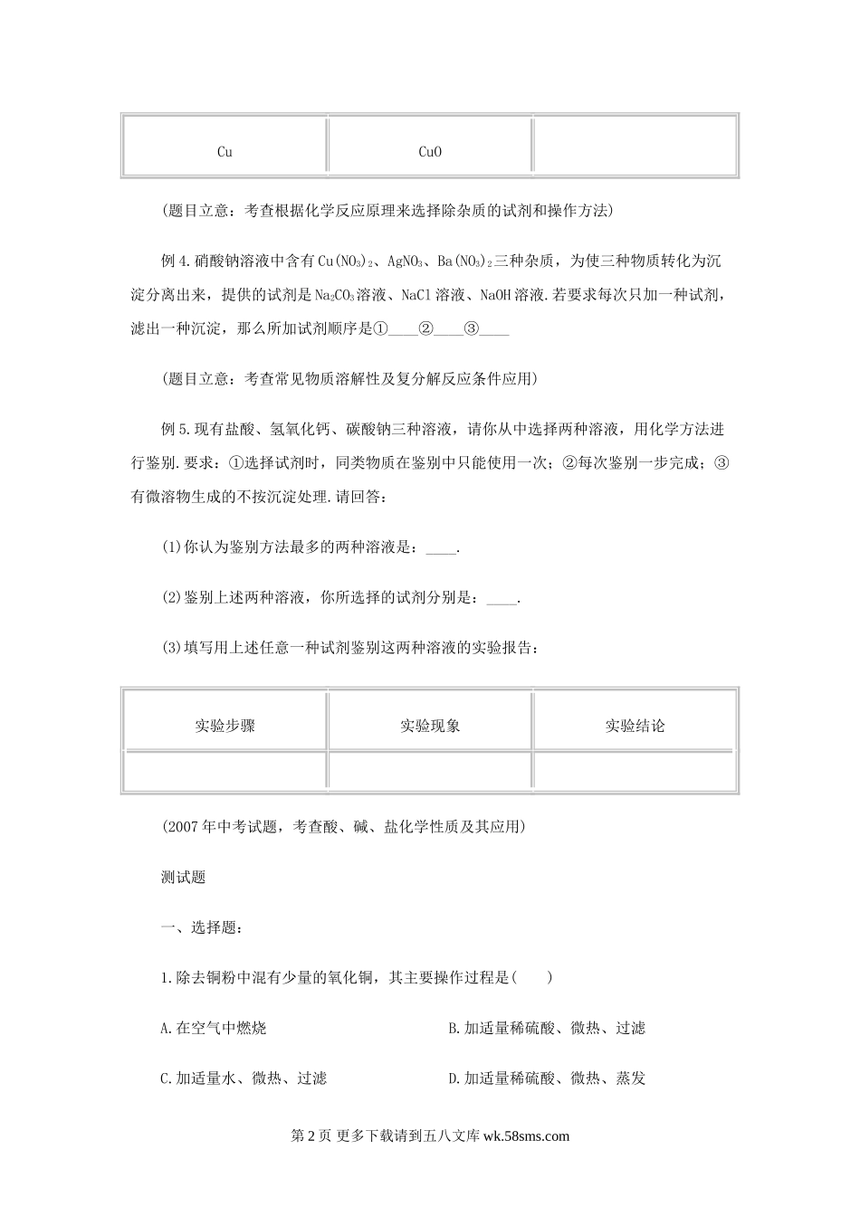 2011中考化学实验复习 物质的鉴别、分离、提纯.doc_第2页
