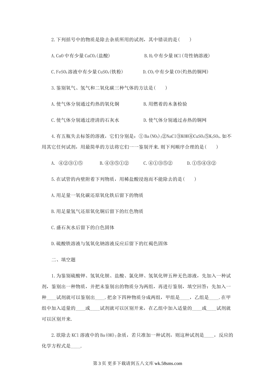 2011中考化学实验复习 物质的鉴别、分离、提纯.doc_第3页