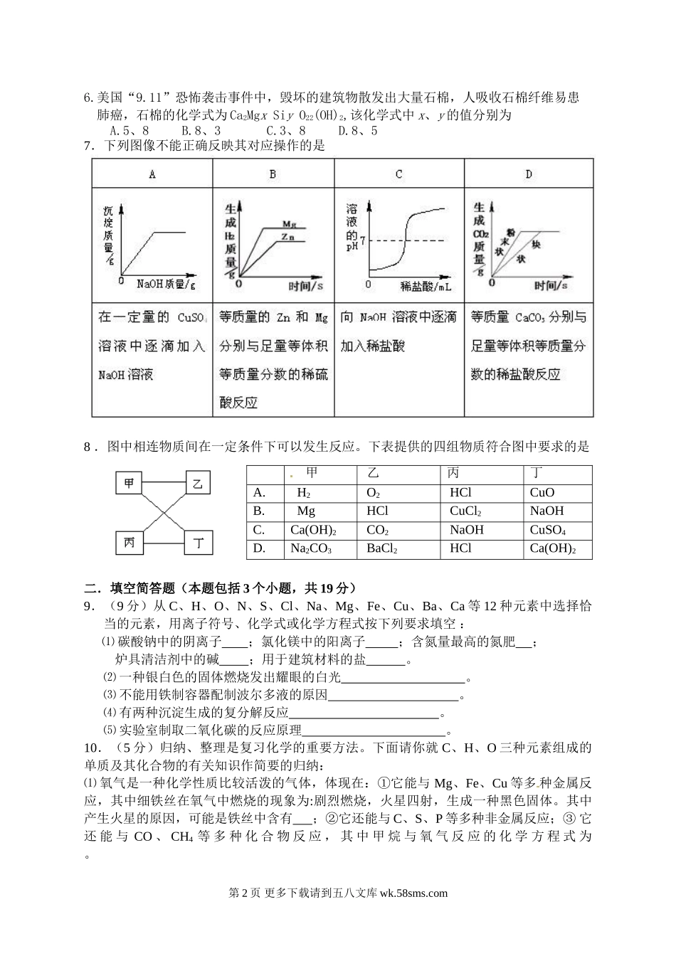 2011年黄冈市中考化学模拟试题及答案A卷.doc_第2页
