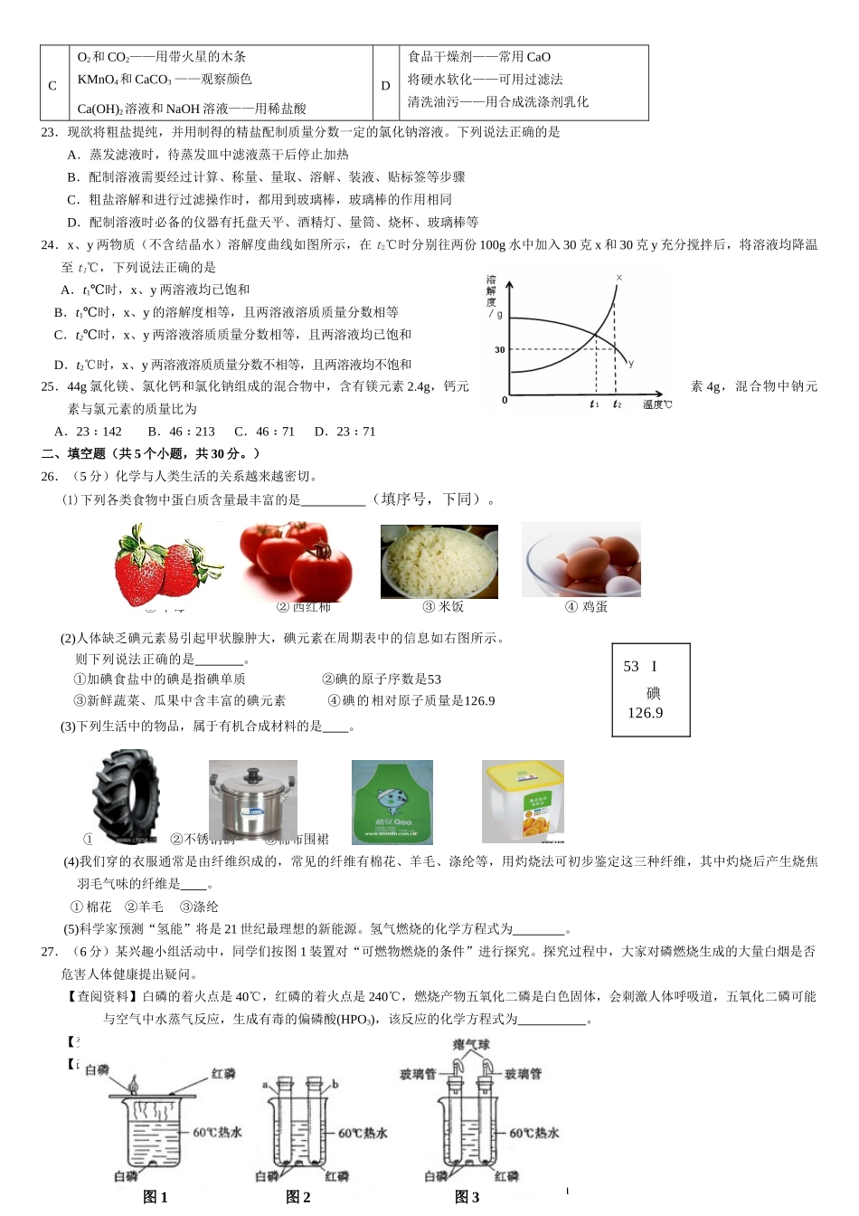 2011房山区初三二模化学试卷及答案.doc_第3页