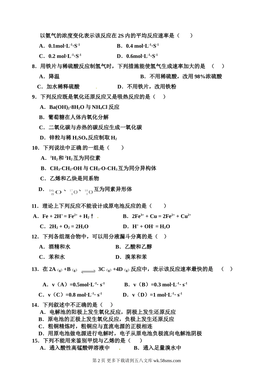 福州八县市一中第二学期高一化学期末试题及答案.doc_第2页