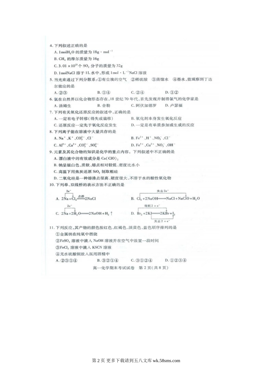 贵阳市第一学期高一化学期末试卷及答案.doc_第2页