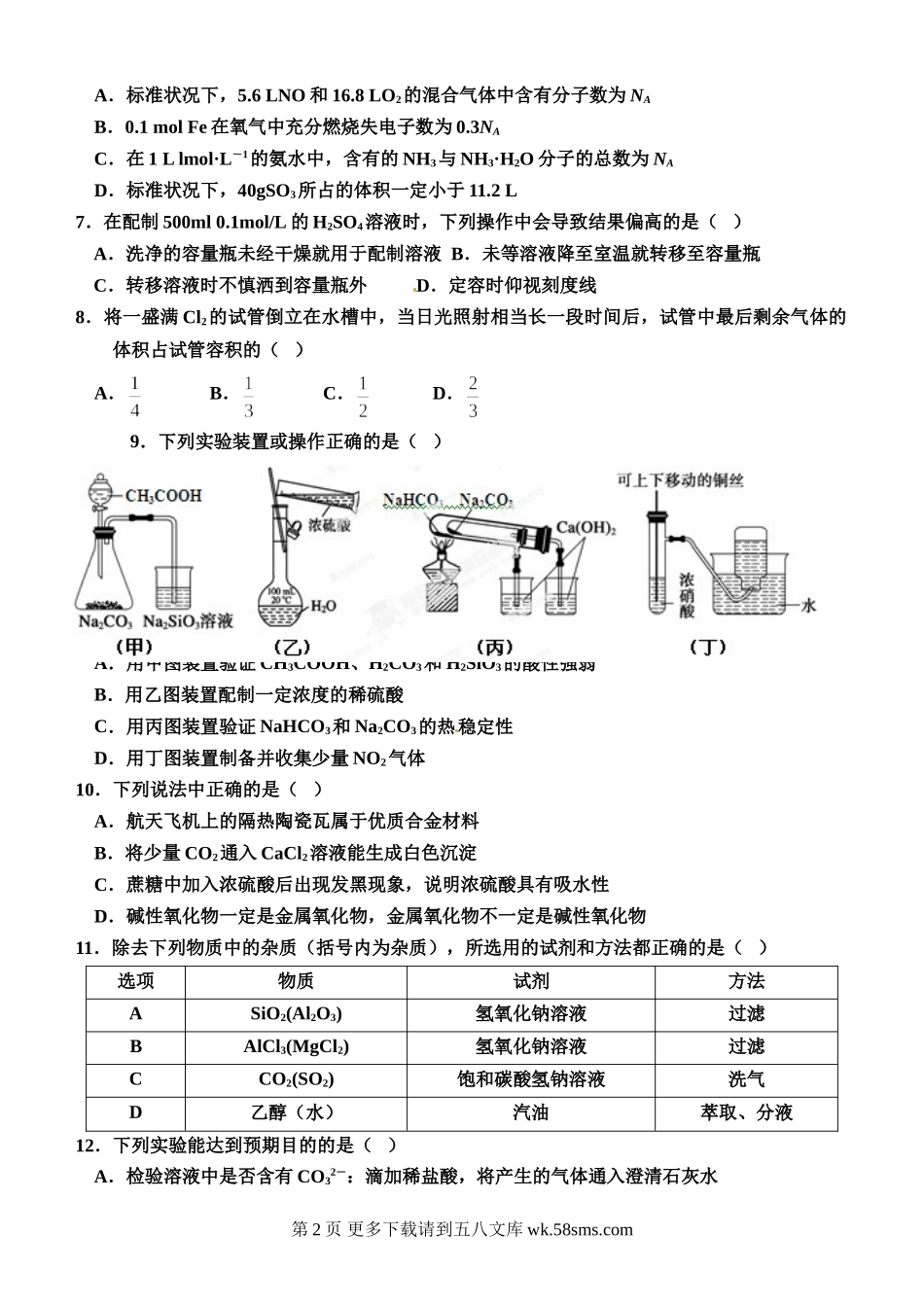 兰州一中高一上学期化学期末试题及答案.doc_第2页