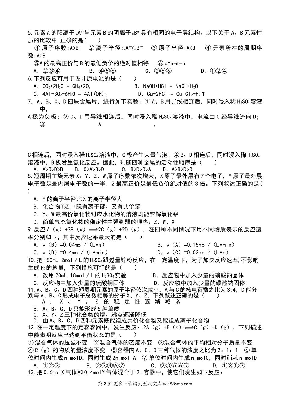 南阳市五校春期高一第二次联考化学试题及答案.doc_第2页