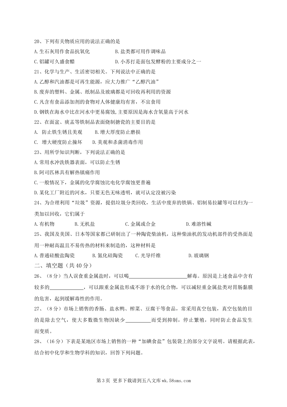 哈三中高二上学期期中化学(文)试题及答案.doc_第3页