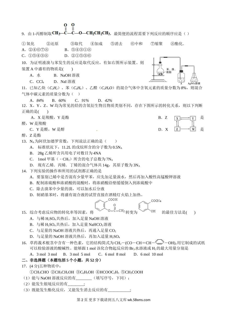南昌八一中学高二5月月考化学试题及答案.doc_第2页