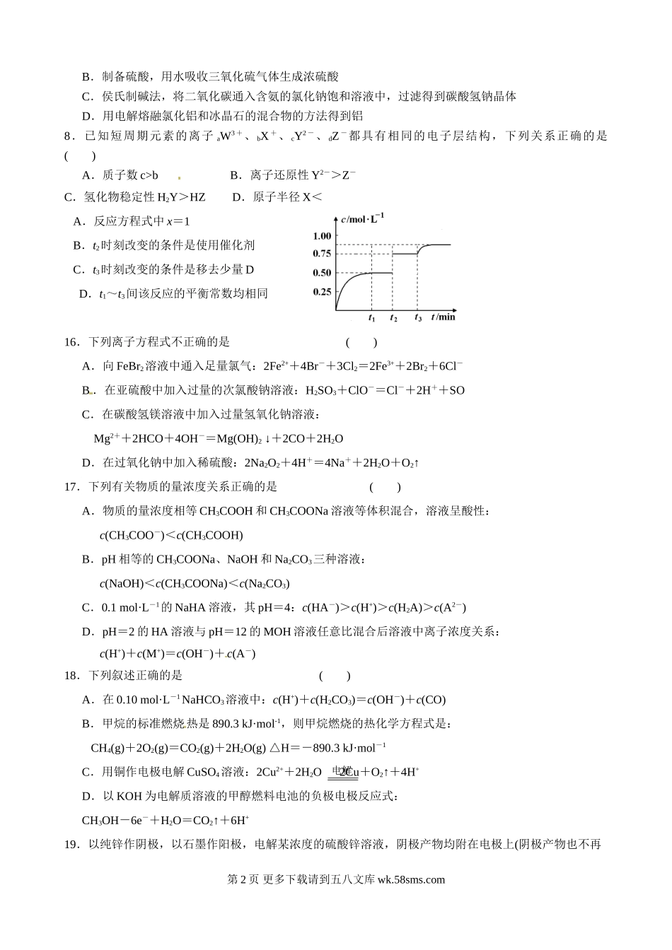 温州十校联考高二下学期期末化学试题及答案.doc_第2页