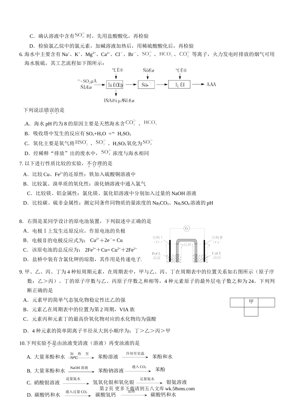石景山区高三上学期化学期末试题及答案.doc_第2页