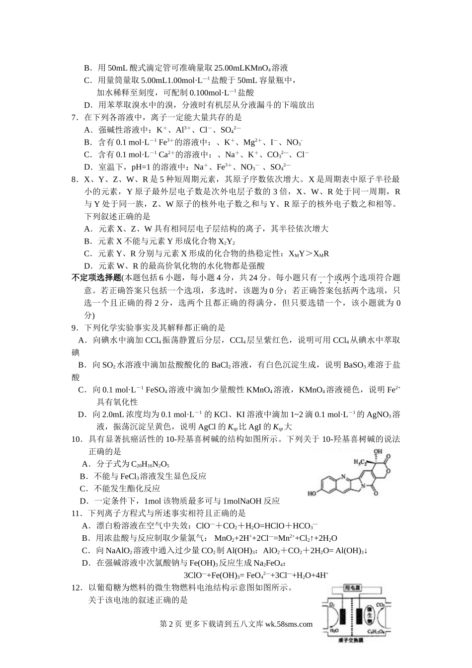 2009江苏高考化学试题及答案可能用到的相对原子质量:H1C12N14O16Na23Mg24Al27S32Cl35.5Ca40Fe56Cu64Ag108I127选择题单项选择题:(本题包括8小题,每题3分,共24分。每小题只有一个选项符合题意)1.《中华人民共...