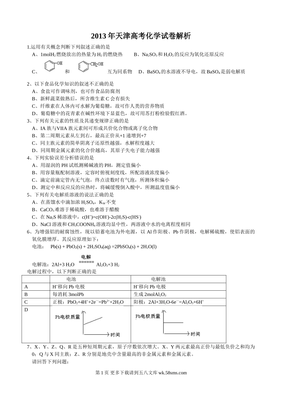 2013年天津高考理综化学试题含答案WORD.doc_第1页