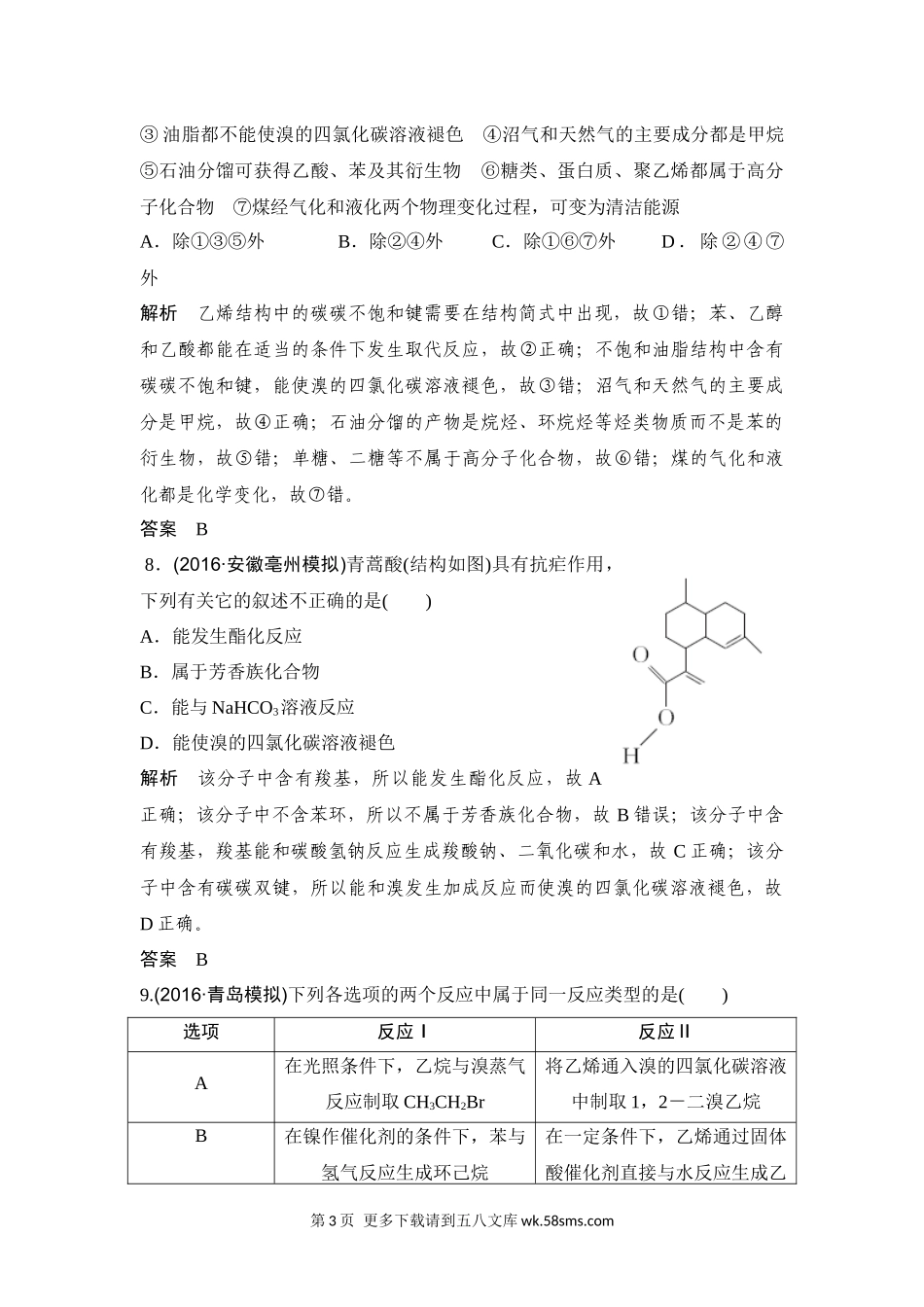 [题型专练]1.(2016·河南周口模拟)下列有关有机化合物的说法正确的是()A.石油的主要成分是烃,煤经过分馏可制得焦炭、煤焦油等产品B.蛋白质水解生成葡萄糖放出热量,提供生命活动的能量C.甲苯的硝化、油脂的...