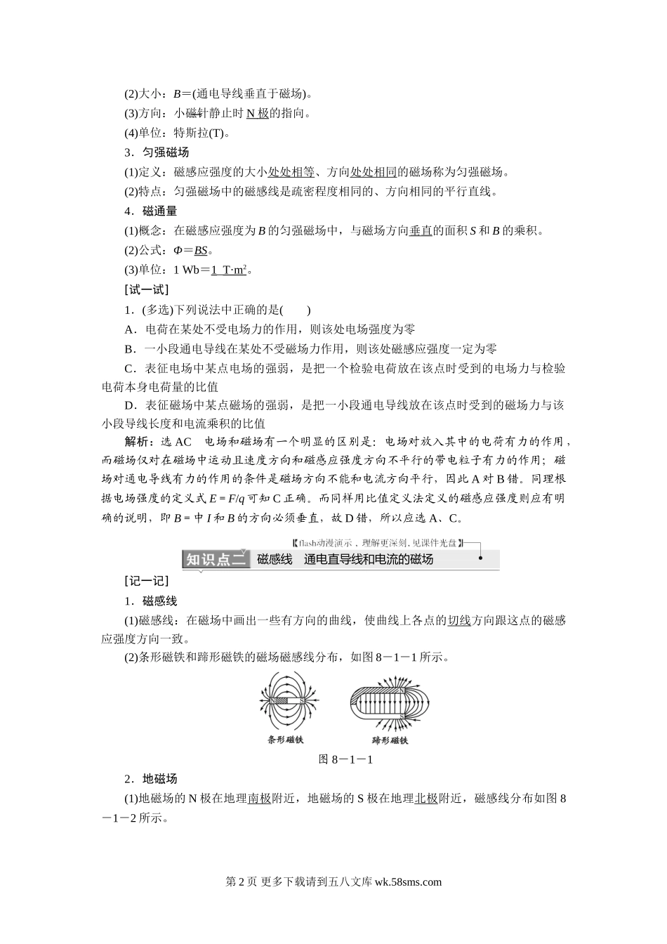 高三物理高考物理一轮复习题及答案解析 第八章 磁场.doc_第2页