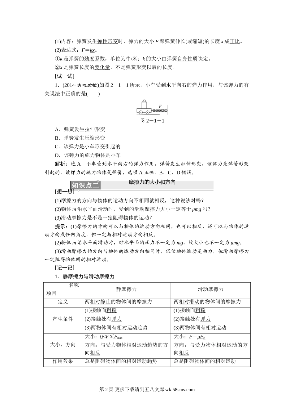 高三物理高考物理一轮复习题及答案解析 第二章 相互作用.doc_第2页